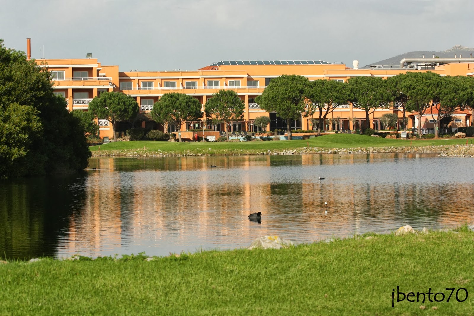 Uma das lagoas que existem no Campo de Golfe, aqui com o Hotel Quinta da Marinha Resort ao fundo.
